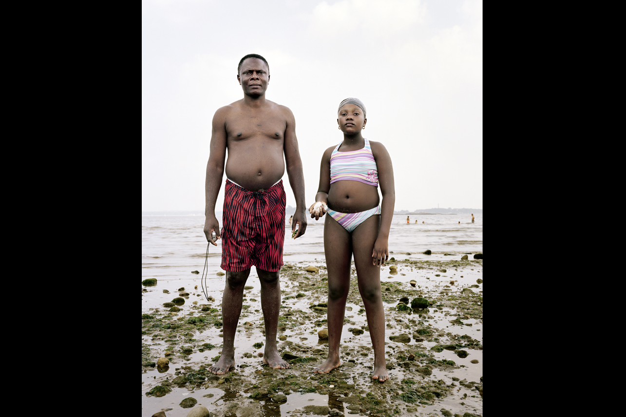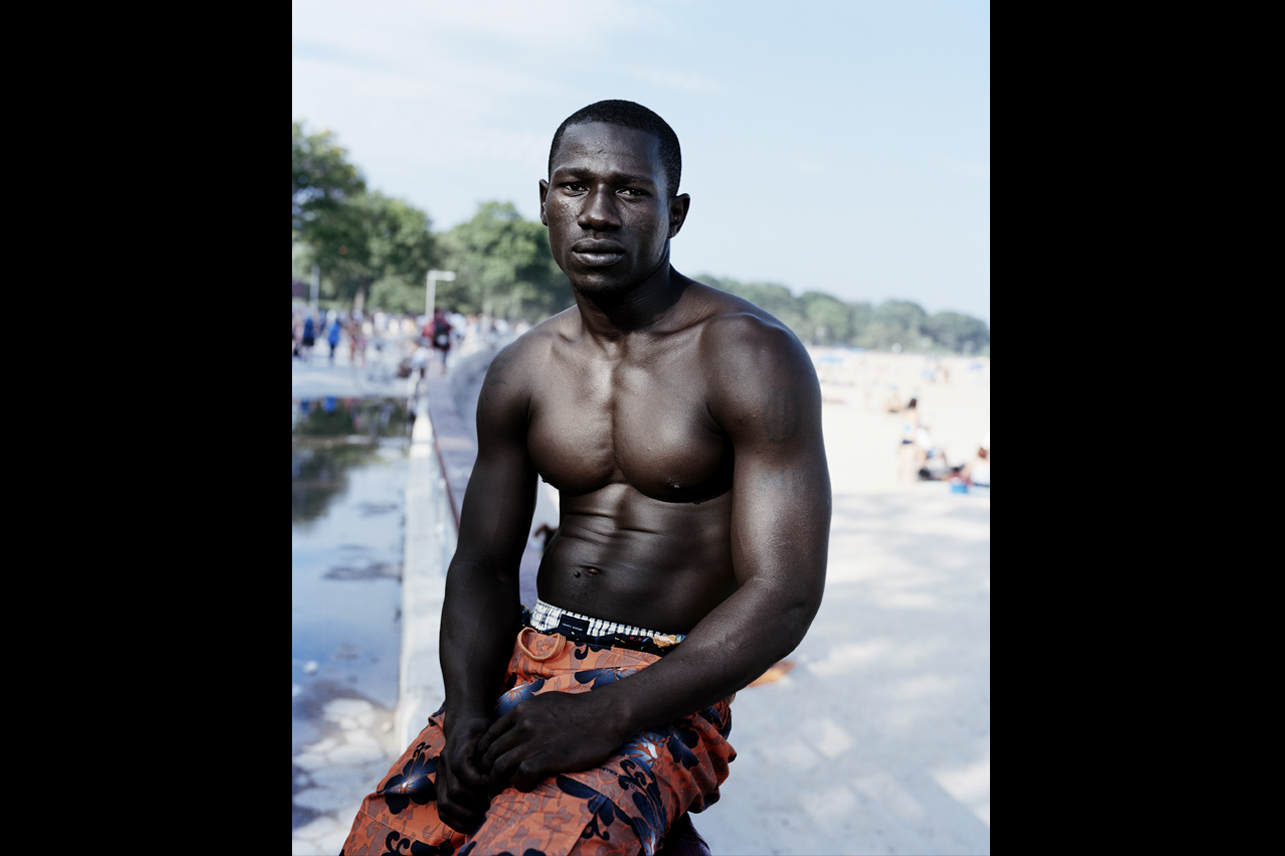 At Orchard Beach, his subjects are open and relaxed, at one with the ocean and sand. For Lawrence, Orchard Beach is like Eden. “When we return to the water from whence we came, we’re reminded of our true essence, which fills us with a sense of peace,” he says. “Our existence is defined by our relationship to our maker, but as we grow and the forces of society creep up, we lose sight of our nature and allow ourselves to be defined by material culture.”