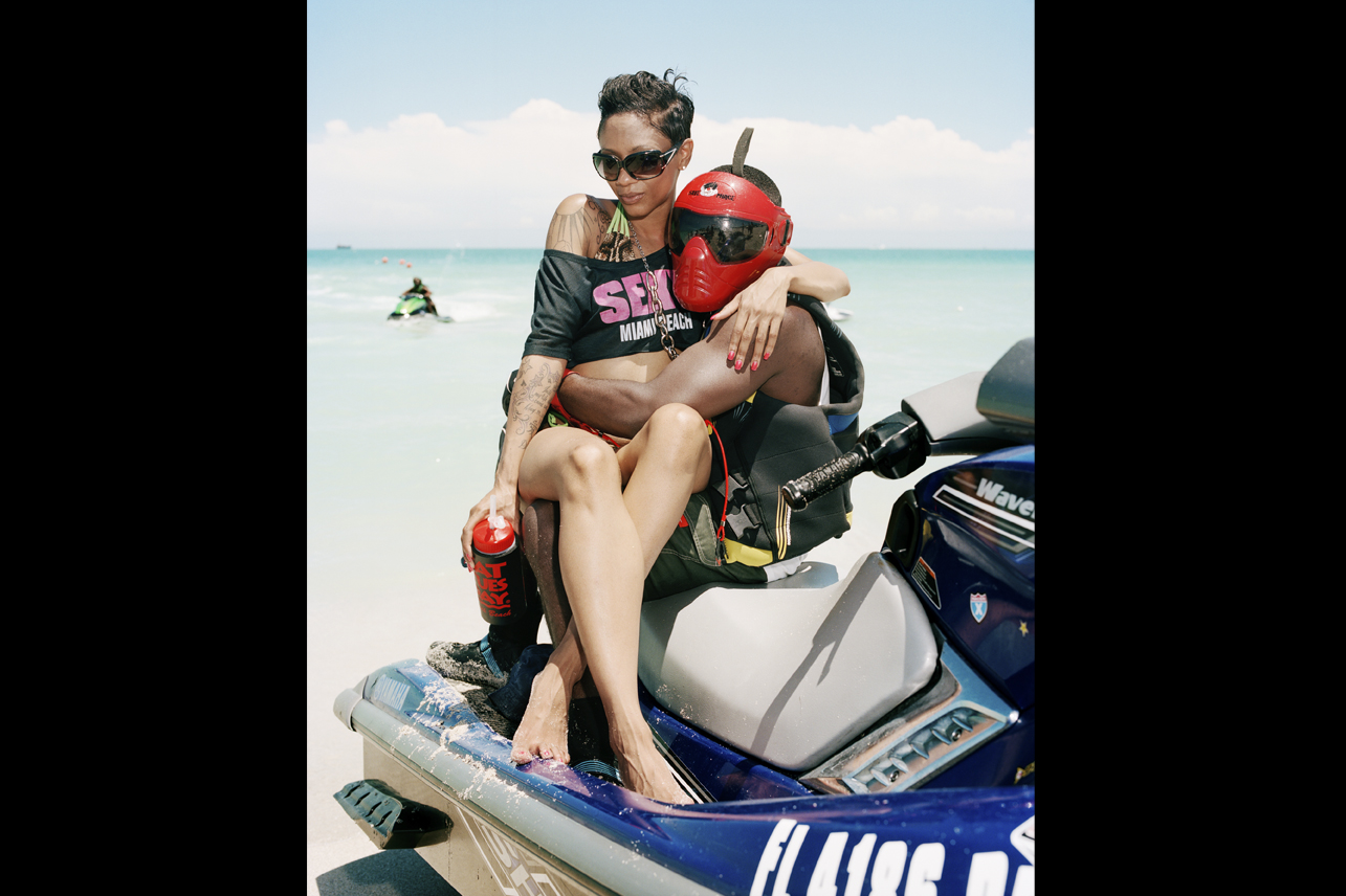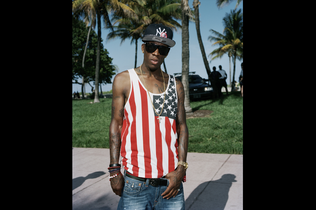 His MIA photos focus on Urban Beach Week in Miami’s South Beach, which draws more than 200,000 visitors to the world’s largest hip-hop street fest. “It transforms South Beach during Memorial Day Weekend from a pastel towns of snowbirds, sand and plastic into a chocolate toned gangster’s paradise with the aspirations of a whole generation of youth in clear view,” Lawrence has written.