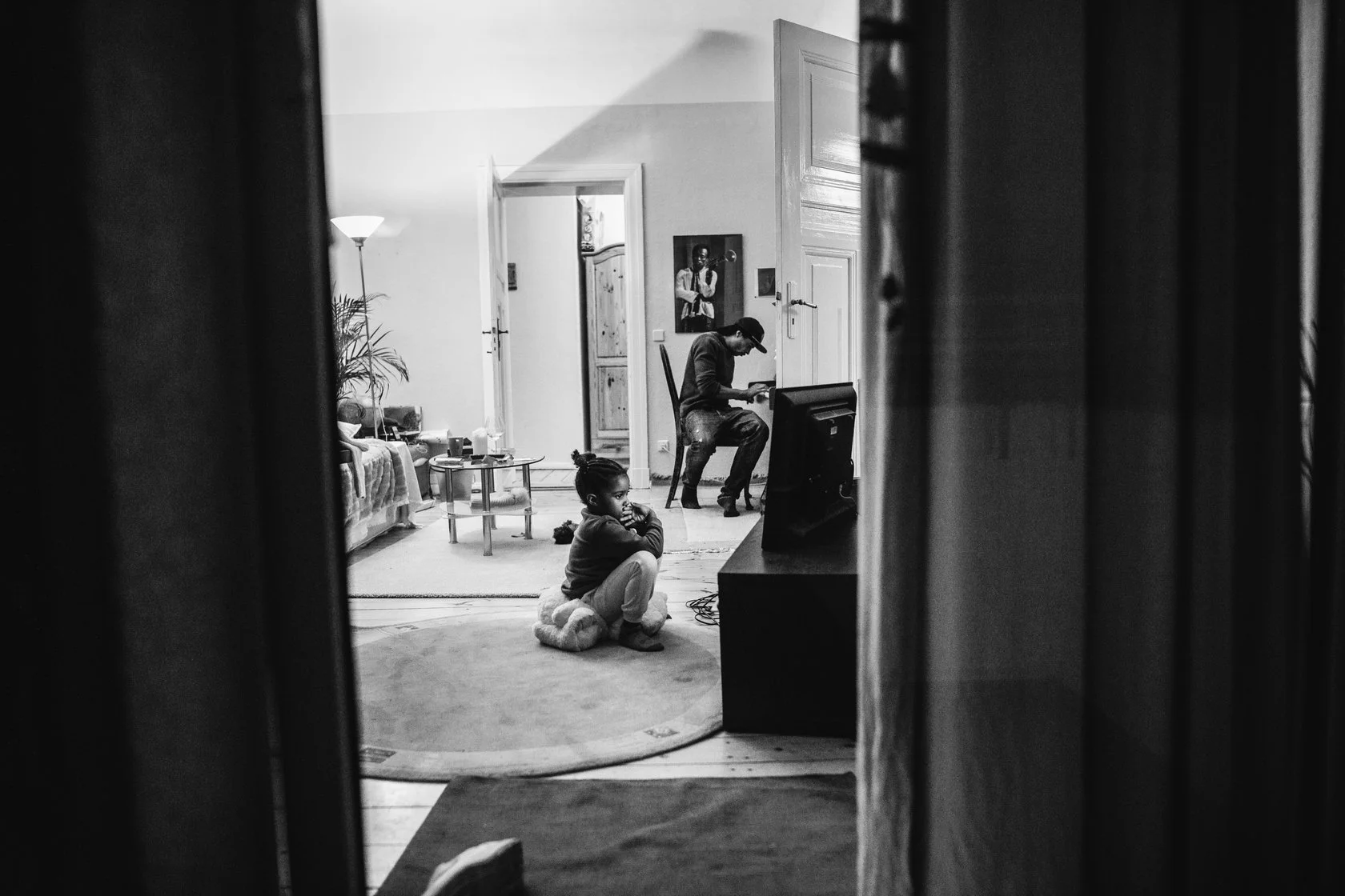 SA: Black German children from the Post-war era often grew up with their biological mother but without a biological father. Mostly there was no contact with the father. The Black father was simply gone. But where were all these fathers, and what did their absence mean for their children? The Black father enables his child to accept his Blackness as a matter of course. There is an often hidden longing that leads many Black Germans to seek their unknown father. Knowing him liberates our Blackness, it allows for awareness. Not everything that we need for our healthy and free development is possible. But a relationship with the Black father should be an option as often as it can be. Very often in our recent past it was not. My project is called “Reality Check: Black Fathers in Germany.” It focuses on a new generation of Black daddies who are proud, committed and self-determined. For a year, I met different Black fathers from all over the country and accompanied them with my camera through their everyday lives – between work, family and leisure – to get a better impression of what these men experience in dealing with their daily struggles and personal successes. The result is a photographic series of portraits, snapshots and interviews of 30 to 40 Black fathers from diverse backgrounds.