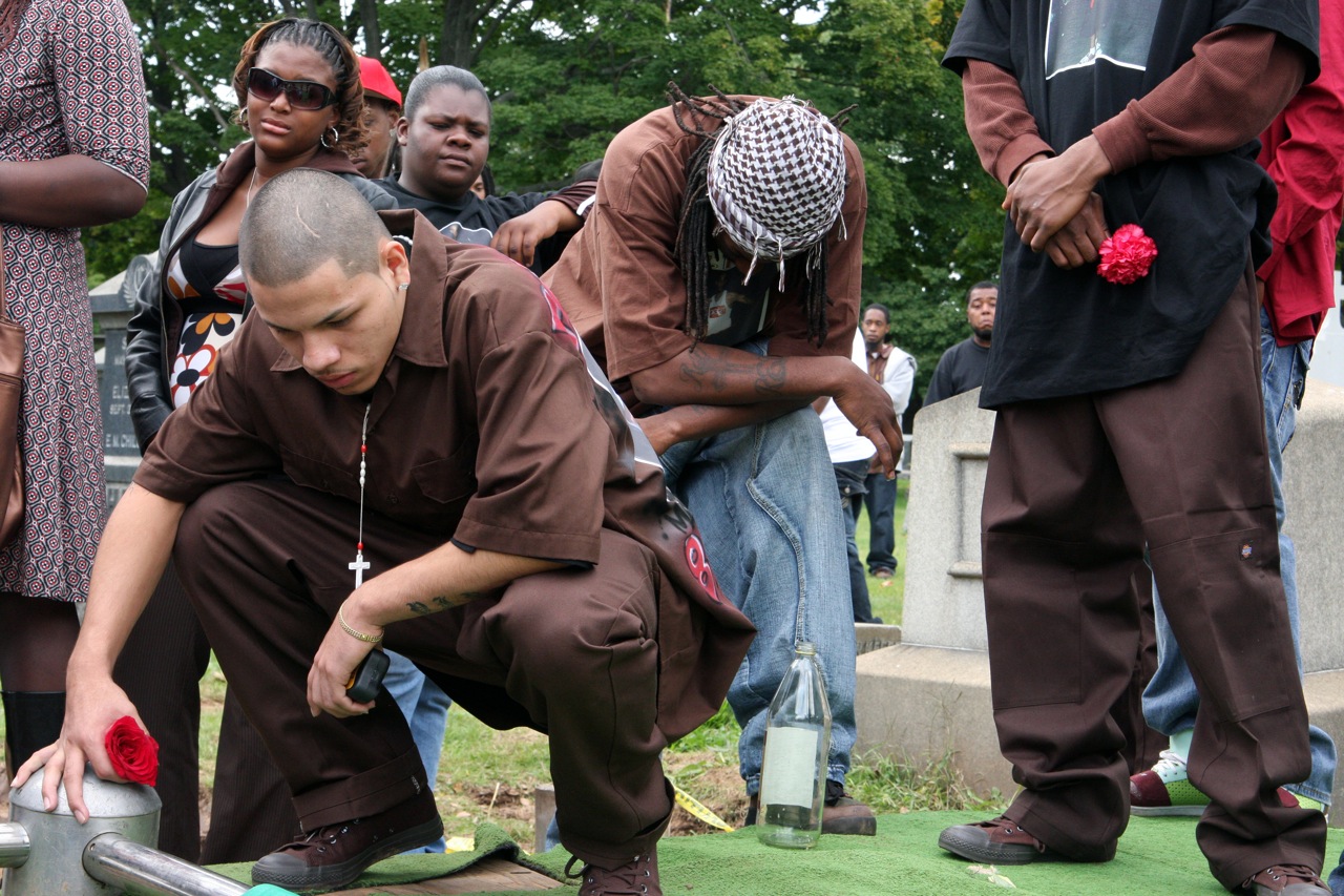 Defined by gang colors, betrayed by politicians, class, empty rhetoric, stupid movies, Black intellectuals, certain rappers and themselves, their outlook often mirrors those of old punk rockers: No future, nigga. Yet, the duality of any hood in America, and what we often forget, is that there are still families cooking outside on the Fourth of July, there is still the sound of laughter as kids play on Christmas, there are still grandmas making pancakes on Sunday morning, there are still budding romances played out on park benches and there is still love. Not just hood antics, but also brotherhood, sisterhood.