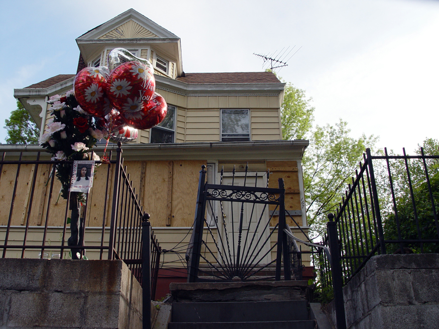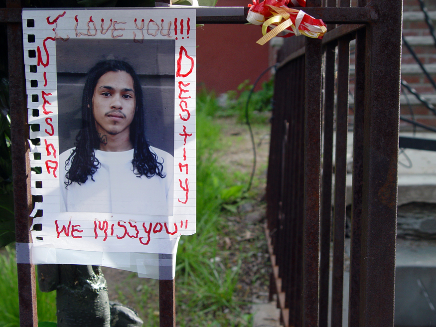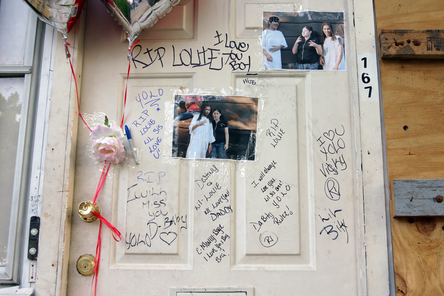 “It was about 12am and we were all sitting on the porch, there was this boy named Naim, we were messing with him telling him to walk the yellow line in the street and we’d buy him a cigarette,'' remembers Jessica. “Then a stolen car came swerving down the block, like 'get the fuck out the street!' So Naim says 'What you gonna do about it? Do something about it!” The car stops, the driver and two passengers get out, the driver shoots Naim and then they all start shooting at the porch. We all ran into the house but we all got shot. When we got upstairs that’s when we realized Louie was missing. He only made it halfway up.”