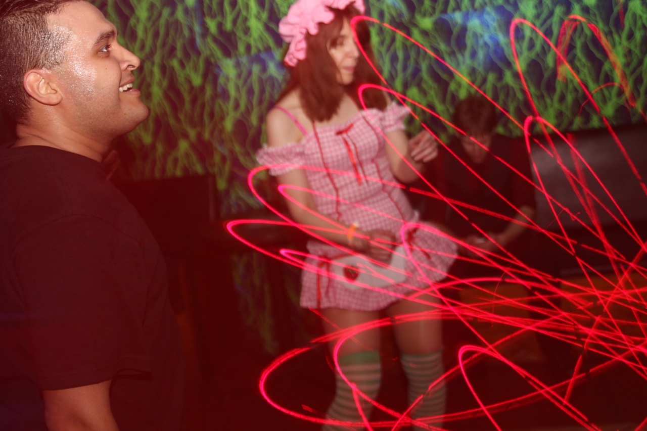 Krys has seen a lot of strangeness at QXT's but one scene stands out: ”There was this guy who ended up being eight feet tall because he was 6’5” and wearing platforms. He had on nothing besides a thong and a spider-body suit. He was basically naked under there, dancing around in his seven-inch platforms.’’